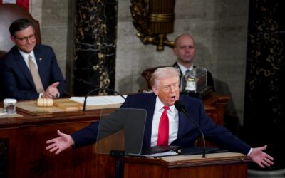 U.S. President Donald Trump delivers the State of the Union address during a joint session of Congress in the House Chamber at the Capitol on February 24, 2026 in Washington, DC. Trump delivered his address days after the Supreme Court struck down the administration’s tariff strategy, and amid a U.S. military buildup in the Persian Gulf threatening Iran.